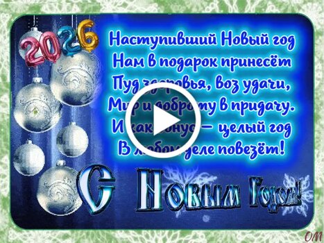 Шикарные открытки с наступившим Новым годом на любой вкус. Видео и анимация, статичные, красочные и монохромные, с теплыми пожеланиями и без слов. Огромная коллекция различных открыток с 1 января, в которой найдется по нраву картинка для самого взыскательного вкуса.