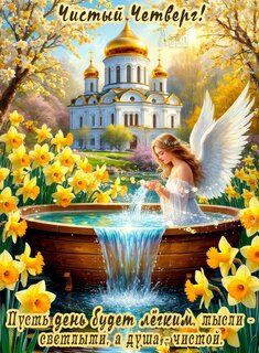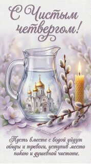 Открытки в Великий четверг, Страстной четверг или Чистый четверг. В этот день вспоминают омовение Иисусом Христом ног апостолов, Тайную вечерю и установление Иисусом Христом таинства евхаристии (причастия), а также моление о чаше в Гефсиманском саду. В народе Великий четверг называют Чистым, так как многие обряды в этот день связаны с очищением. В этом соединились христианская (духовное очищение перед Пасхой) и языческая (очищение тела и окружающего пространства перед началом нового годового цикла) традиции.
