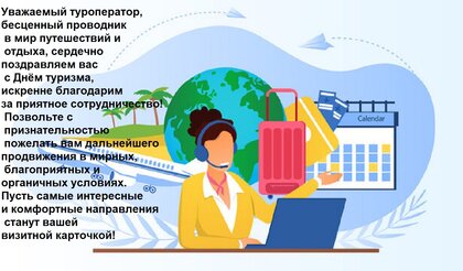 Открытки с днем тур-менеджера для менеджеров по туризму. Менеджер по туризму - это специалист, обеспечивающий туристические поездки клиентов, координирующий работу задействованных при этом людей и организаций.Поздравляем всех специалистов этой области с профессиональным праздником и желаем терпения, удачи, успехов.