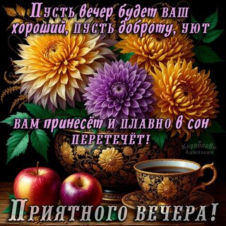 Красивые анимированные открытки с пожеланиями доброго вечера, приятного вечера, милого вечера, романтического вечера