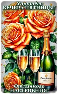 Открытки с наступающей и наступившей пятницей, поздравление с окончанием рабочей недели, пожелания удачной пятницы 13-го, и открытки с разнообразными фразами про пятницу. Все что связано с одним из самых любимых дней недели. Отправляйте своим друзьям поздравления с пятницей, радуйтесь, балдейте, расслабляйтесь и отрывайтесь. Ведь впереди выходные.