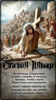 Открытки на Страстную Пятницу вы найдете в этом разделе. В Страстную пятницу вспоминается смерть Иисуса Христа на кресте. Верующие в Страстную пятницу блюдут самый строгий пост, не готовят пищу, не занимаются домашними делами.