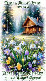 Открытки с пожеланием всего и сразу. На одной открытке есть слова и про уют в доме, и про удачу лично для друга, и про тепло которое будет его согревать холодными зимними вечерами. Все мы знаем, что все и сразу обычно не бывает и чтобы это получить нужно много и упорно трудиться, но желать и хотеть этого не вредно, а очень даже полезно. Главное не останавливаться только на желаниях, а непременно воплощать их в жизнь.