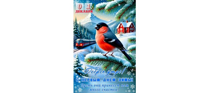 Открытка "1 ДЕКАБРЯ. ДОБРОЕ УТРО! С ПЕРВЫМ ДНЕМ ЗИМЫ! ПУСТЬ ОНА ПРИНЕСЕТ НАМ МНОГО СЧАСТЬЯ!"