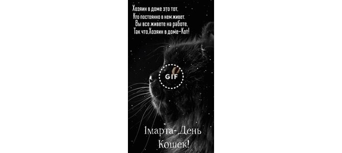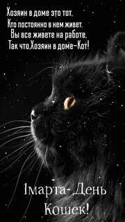 Анимированная открытка "1 марта - День Кошек! Хозяин в доме это тот, кто постоянно в ем живёт. Вы все живёте на работе, так"