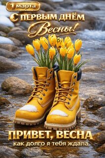Анимированная открытка "1 марта С первым днём Весны! Привет, Весна. Как долго я тебя ждала."