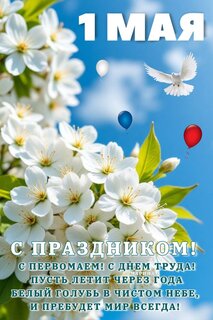 Открытка "1 МАЯ. С Праздником! С Первомаем! С ДНЕМ Труда! Пусть Летит Через ГОДА Белый Голубь В Чистом НЕБЕ, И"