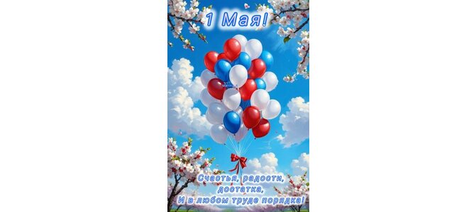 Открытка "1 МАЯ! Счастья, Радости, Достатка И В Любом Труде Порядка!"