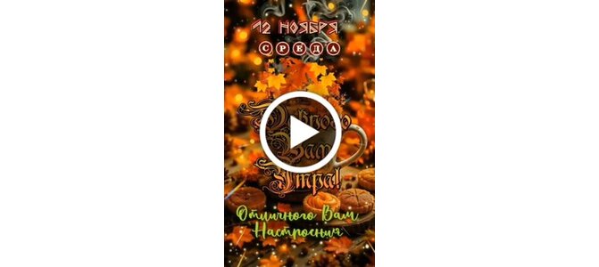 Видеооткрытка "12 ноября Среда Доброго Вам утречка!"