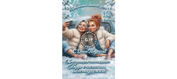 Анимированная открытка "13 февраля Прекрасный зимний день. С Днем Подруги! Хочу шепнуть тебе на ушко: Будь счастлива,"
