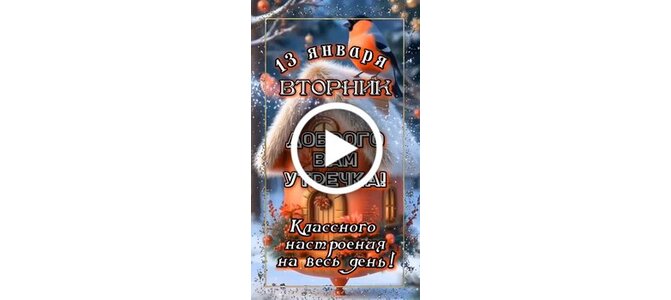 Видеооткрытка "13 января Вторник Доброго Вам утречка! Классного настроения на весь день!"