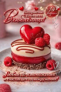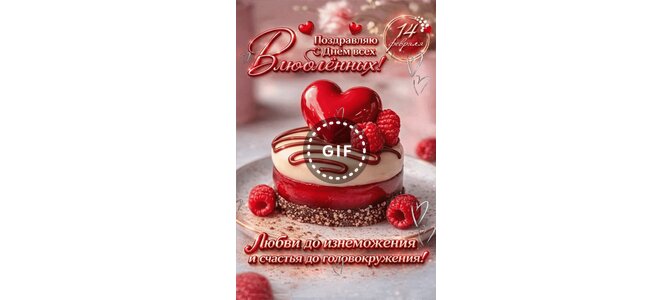 Анимированная открытка "14 февраля Поздравляю с Днем всех Влюблённых! Любви до изнеможения и счастья до головокружения!"