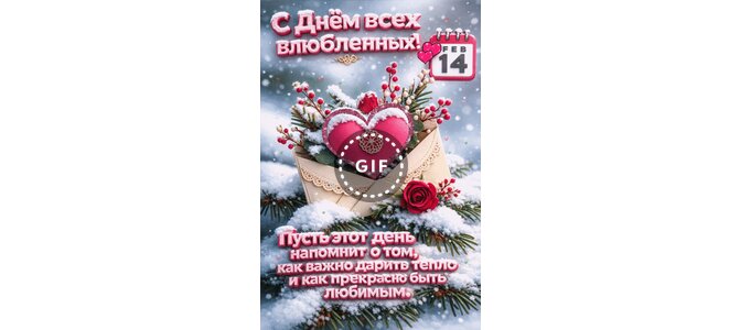 Анимированная открытка "14 февраля С Днём всех влюблённых! Пусть этот день напомнит о том, как важно дарить тепло и как прек"