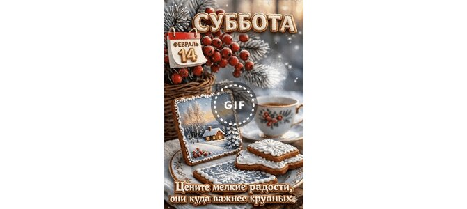 Анимированная открытка "14 февраля. Суббота. Цените мелкие радости, они куда важнее крупных."