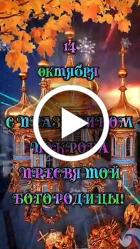 Видеооткрытка "14 октября С праздником Покров Пресвятой Богородицы! Сердечные примите поздравления с Покровом Богородицы"