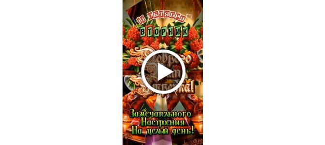 Видеооткрытка "14 октября. Вторник. Доброго Вам утречка! Замечательного настроения на весь день!"
