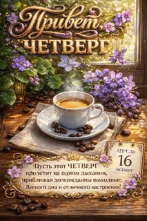 Анимированная открытка "16 апреля Привет, четверг. Пусть этот четверг пролетит на одном дыхании, приближая долгожданные"