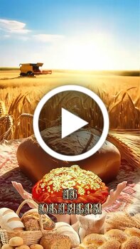 Видеооткрытка "16 октября Международный день хлеба. Вас с Днем хлеба поздравляю, каравая на столе. Были чтоб"