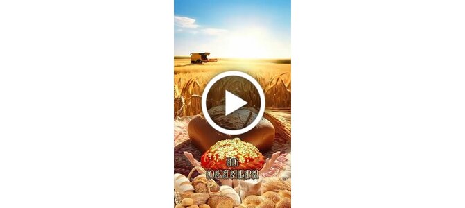 Видеооткрытка "16 октября Международный день хлеба. Вас с Днем хлеба поздравляю, каравая на столе. Были чтоб"