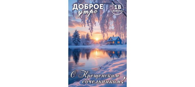 Открытка "18 ЯНВАРЯ. ДОБРОЕ УТРО! С КРЕЩЕНСКИМ СОЧЕЛЬНИКОМ!"