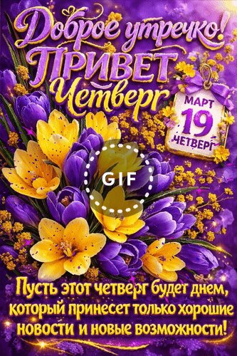 Анимированная открытка "19 марта Доброе утречко! Привет Четвергю Пусть этот четверг будет днем, который принесет только хор"