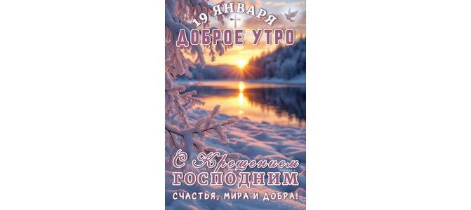 Открытка "19 ЯНВАРЯ. ДОБРОЕ УТРО. С КРЕЩЕНИЕМ ГОСПОДНИМ. СЧАСТЬЯ, МИРА И ДОБРА!"