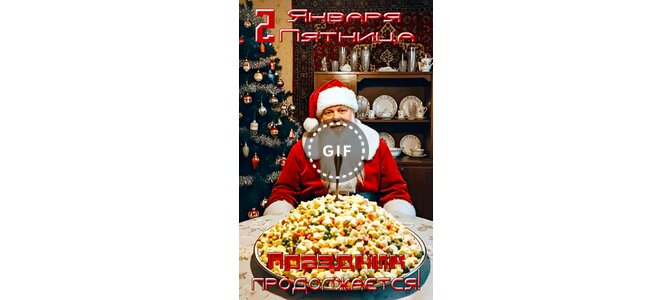 Анимированная открытка "2 января Пятница Праздник продолжается!"
