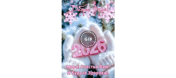 Анимированная открытка "2026 Доброе утро! Мира! Счастья вам! И будьте здоровы!"