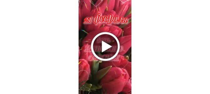 Видеооткрытка "21 февраля День женского счастья Пусть радость, счастье, любовь и везение всегда освещают твой путь!"
