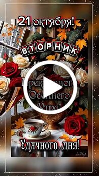 Видеооткрытка "21 октября Вторник. Прекрасного осеннего утра! Удачного дня! Пусть за окном будет солнце, в чашке -"