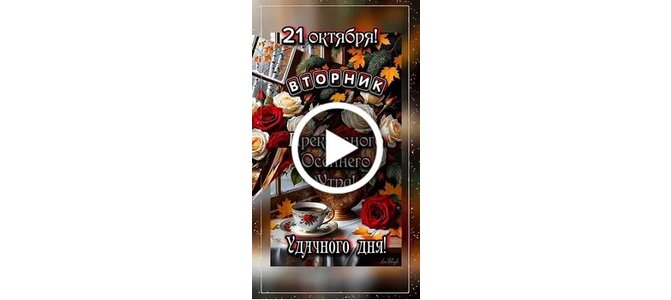 Видеооткрытка "21 октября Вторник. Прекрасного осеннего утра! Удачного дня! Пусть за окном будет солнце, в чашке -"