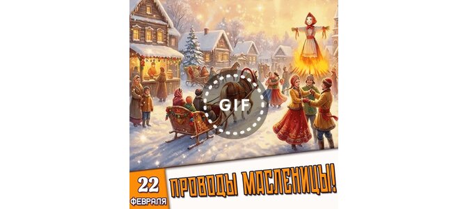 Анимированная открытка "22 февраля Проводы Масленицы!"