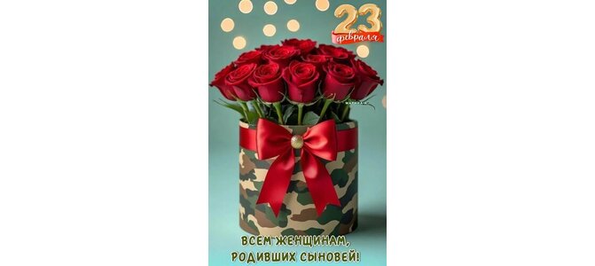 Открытка "23 ФЕВРАЛЯ. ВСЕМ ЖЕНЩИНАМ, РОДИВШИХ СЫНОВЕЙ!"