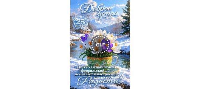 Анимированная открытка "25 февраля Доброе утро! Пусть каждый новый февральский день добавляет к настроению каплю весенней"