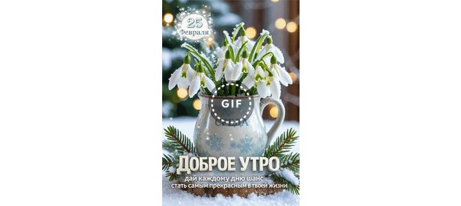 Анимированная открытка "25 февраля Среда Доброе утро. Дай каждому дню шанс стать самым прекрасным в твоей жизни"
