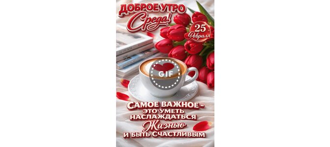 Анимированная открытка "25 февраля. Среда! Доброе утро. Самое важное - это уметь наслаждаться жизнью и быть счастливым."