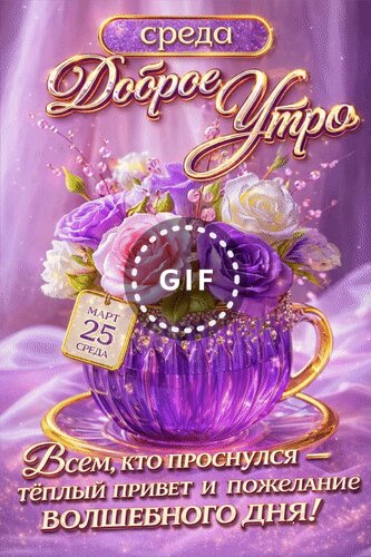 Анимированная открытка "25 марта Среда. Доброе утро. Всем, кто проснулся - тёплый привет и пожелание волшебного дня!"