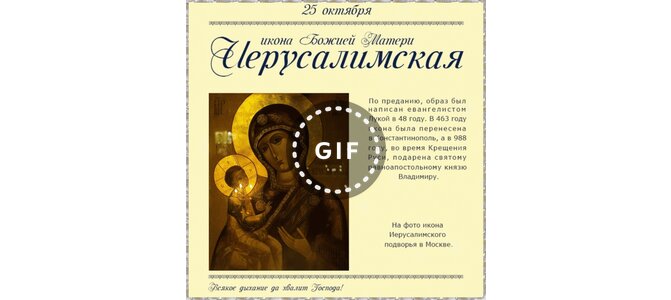 Анимированная открытка "25 октября Икона Божией Матери Иерусалимская. "