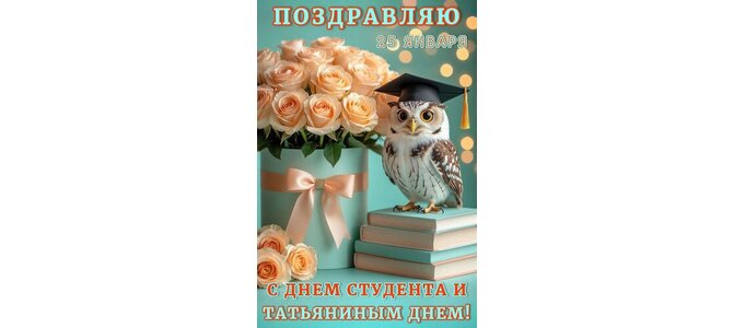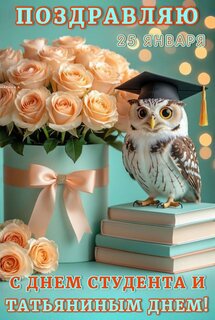 Открытка "25 ЯНВАРЯ. ПОЗДРАВЛЯЮ С ДНЕМ СТУДЕНТА И ТАТЬЯНИНЫМ ДНЕМ!"