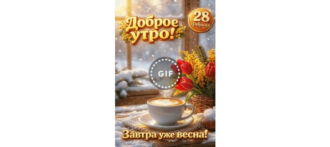 Анимированная открытка "28 февраля Доброе утро! Завтра уже весна!"