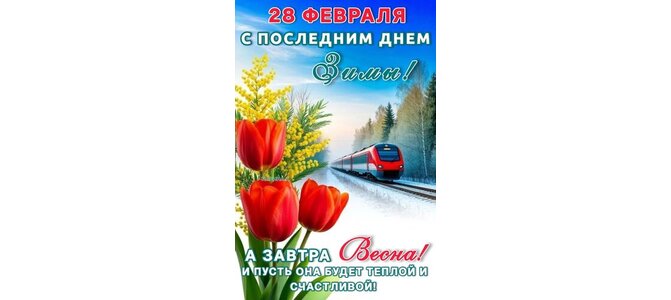 Открытка "28 ФЕВРАЛЯ. С ПОСЛЕДНИМ ДНЕМ ЗИМЫ! А ЗАВТРА ВЕСНА! И ПУСТЬ ОНА БУДЕТ ТЕПЛОЙ И СЧАСТЛИВОЙ!"