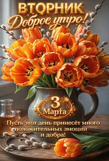 Анимированная открытка "3 марта Вторник Доброе утро! Пусть этот день принесет много положительных эмоций и добра!"