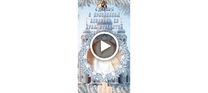 Видеооткрытка "4 декабря С праздником Введения во храм Пресвятой Богородицы! Пусть Богородица, как в храм, войдёт с"