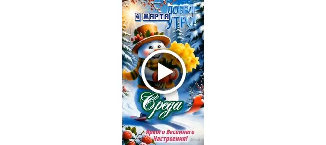 Видеооткрытка "4 марта Доброе утро! Среда. Яркого весеннего настроения!"
