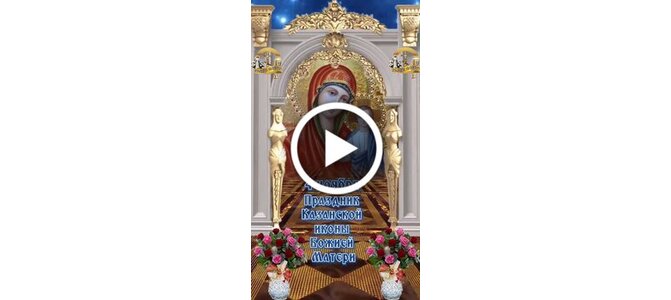 Видеооткрытка "4 ноября Праздник Казанской иконы Божией Матери. Пусть Божия Матерь убережёт вас от всех бед и..."