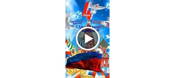 Видеооткрытка "4 ноября С Днем народного единства! С праздником! Желаю мира, здоровья, счастья!"