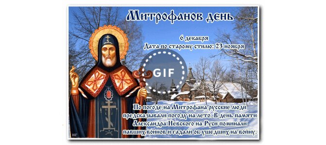 Анимированная открытка "6 декабря Митрофанов день"
