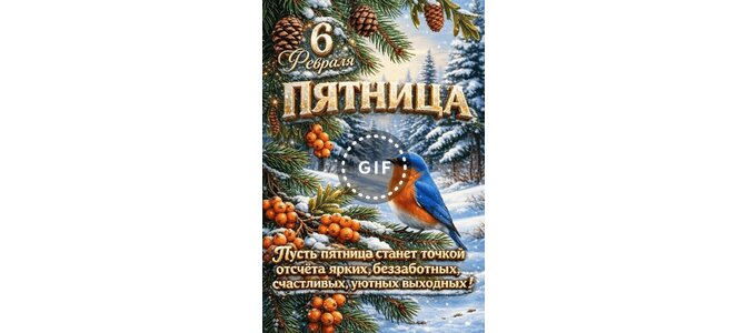 Анимированная открытка "6 февраля Пятница Пусть пятница станет точкой отсчёта ярких, беззаботных. счастливых, уютных выходны"