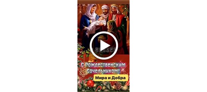 Видеооткрытка "6 января С Рождественским сочельником! Мира и добра. В канун святого Рождества сочельник отмечается."