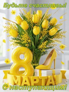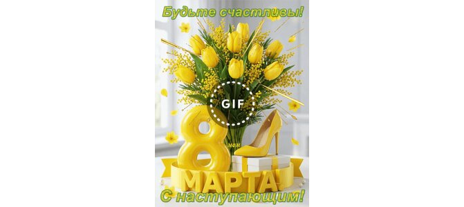 Анимированная открытка "8 Марта С наступающим! Будьте счастливы!"
